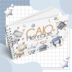 2 páginas para escrever algumas curiosidades do Bebê e espaços para 5 fotos em cada mês.